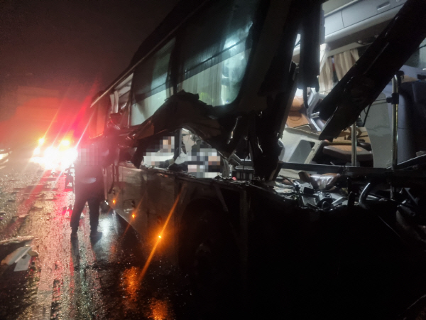 | 24ÀÏ ¿ÀÀü 6½Ã38ºÐ °æ³² ÇԾ籺 ¼öµ¿¸é Å뿵´ëÀü°í¼Óµµ·Î ¼öµ¿Á¹À½½°ÅÍ Àα٠ÁöÁ¡(´ëÀü ¹æ¸é)¿¡¼ °í¼Ó¹ö½º¿Í 24t ȹ°Â÷ ¿·¸éÀÌ Ãæµ¹ÇÏ´Â »ç°í·Î 9¸íÀÌ ´ÙÃÆ´Ù. »çÁøÀº »ç°í ÇöÀå. µ¶ÀÚ Á¦°ø