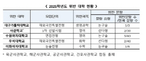 ÀÌÈ­¿©´ë, ¼ö¿ø¿©´ë, ¿ì¼®´ë, ´ë±¸°¡Å縯´ë µî 4°³ ´ëÇаú »ç°üÇб³°¡ ´ëÇк° °í»ç¿¡¼­ °í±³ ±³À°°úÁ¤À» ³Ñ¾î¼± ¹®Á¦¸¦ ÃâÁ¦ÇØ ±³À°ºÎ·ÎºÎÅÍ ½ÃÁ¤ ¸í·ÉÀ» ¹Þ¾Ò´Ù. ±³À°ºÎ´Â ¡®¼±ÇàÇнÀ ¿µÇâÆò°¡¡¯¸¦ ½Ç½ÃÇÑ °á°ú ÀÌµé ´ëÇÐÀÌ 2025Çг⵵ ´ëÇк° °í»ç¿¡¼­ ¡®°ø±³À° Á¤»óÈ­ ÃËÁø ¹× ¼±Çà±³À° ±ÔÁ¦¿¡ °üÇÑ Æ¯º°¹ý¡¯(°ø±³À°Á¤»óÈ­¹ý)À» À§¹ÝÇÑ °ÍÀ¸·Î ÆÇ´ÜÇß´Ù°í 25ÀÏ ¹àÇû´Ù. °ËÅäÀ§¿øµéÀº 2025Çг⵵ ´ëÇк° °í»ç¸¦ ½Ç½ÃÇÑ 67°³ ´ëÇÐÀÇ 3297°³ ¹®Ç×À» »ìÆìº¸°í ÀÌ °°Àº °á·ÐÀ» ³»·È´Ù.