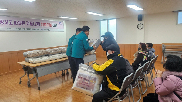 ºÎ»ê ³²±¸(±¸Ã»Àå ¿ÀÀºÅÃ)´Â Áö³ 12¿ù 26ÀÏ ´ë¿¬5µ¿ ÇàÁ¤º¹Áö¼¾ÅÍ¿¡¼ °Ü¿ïö ÇÑÆÄ·Î ¾î·Á¿òÀ» °Þ´Â Ãë¾à°èÃþÀ» ´ë»óÀ¸·Î °Ü¿ï¿ë ¾ç¸ðÀ̺ÒÀ» Àü´ÞÇß´Ù.