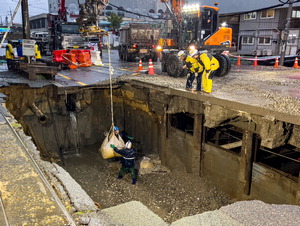 | Áö³ÇØ 9¿ù »ç»ó±¸ ÇÑ µµ·Î¿¡ °¡·Î 10£í, ¼¼·Î 5£í, ±íÀÌ 8£í°¡·®ÀÇ ´ëÇü ½ÌũȦÀÌ ¹ß»ýÇØ ÇöÀå °ü°èÀÚ°¡ º¹±¸ ÀÛ¾÷À» ÇÏ´Â ¸ð½À. ±¹Á¦½Å¹®DB¡¤¿¬ÇÕ´º½º |