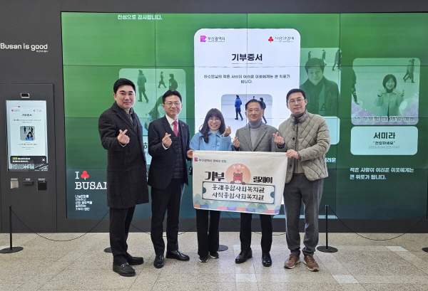 Áö³ 7ÀÏ »çÁ÷Á¾ÇÕ»çȸº¹Áö°ü Ȳ½ÂÈ£ °üÀå°ú µ¿·¡Á¾ÇÕ»çȸº¹Áö°ü Çϼҿ¬ °üÀå, ºÎ»ê½ÃÀÇȸ ¹ÚÁß¹¬, ¼Û¿ìÇö, ¼±¹º¸ ½ÃÀÇ¿øÀÌ ºÎ»ê±¤¿ª½Ãû 1Ãþ ·Îºñ¿¡ ¸¶·ÃµÈ ¡®ºÎ»ê½Ã ±âºÎ Ű¿À½ºÅ©¡¯¸¦ ÅëÇØ ³ª´® Ȱµ¿¿¡ Âü¿©Çß´Ù.