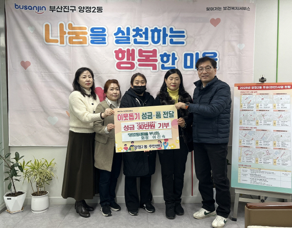 ºÎ»êÁø±¸ ¾çÁ¤2µ¿ »õ¸¶À»ºÎ³àȸ(ȸÀå ÀÌÁø¼÷)´Â Áö³ 14ÀÏ, ¡®Èñ¸Á2026 ³ª´® Ä·ÆäÀΡ¯¼º±Ý 30¸¸ ¿øÀ» ºÎ»êÁø±¸ ¾çÁ¤2µ¿(µ¿Àå ±èÁ¾¿î)¿¡ Àü´ÞÇß´Ù.