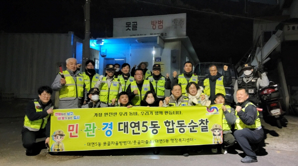 ºÎ»ê ³²±¸ ´ë¿¬5µ¿ ¸ø°ñÀÚÀ²¹æ¹ü´ë(´ëÀå Á¶ÀçÈ£)´Â Áö³ 1¿ù 15ÀÏ, ´ë¿¬5µ¿ Á÷¿ø ¹× ¸ø°ñÆÄÃâ¼Ò °æÂû°üµé°ú ÇÔ²² ÁֹΡ¤°ø¹«¿ø¡¤°æÂû(¹Î¡¤°ü¡¤°æ) ÇÕµ¿ ¼øÂûÀ» Çß´Ù.