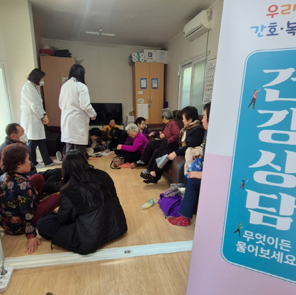 ã¾Æ°¡´Â º¸°Ç¡¤º¹ÁöÆÀ¿¡¼ °æ·Î´çÀ» ¹æ¹®ÇÏ¿© ¾î¸£½Åµé¿¡°Ô ÇÊ¿ä·Î ÇÏ´Â À¯ÀÍÇÑ °¢Á¾ º¹Áö»ç¾÷¿¡ ´ëÇÑ Á¤º¸¸¦ Á¦°øÇϰí Ç÷¾Ð¡¤Ç÷´ç ÃøÁ¤ ¹× ¸ÂÃãÇü °Ç° »ó´ãÀ» ½ÃÇàÇÏ¿´´Ù. À̹ø À̵¿»ó´ã½Ç¿¡¼´Â º¸°Ç¼Ò ±¸°º¸°Ç½Ç¿¡¼ °í·ÉÀÚ ÀÇÄ¡ µî °ü¸®¹ý°ú °ËÁø Áֱ⿡ ´ëÇØ¼ ¾È³»Çϰí, ÀÇÄ¡ °ü·Ã Áö¿ø Á¦µµ¸¦ ¼Ò°³Çß´Ù. Ä¡¸Å¾È½É¼¾ÅÍ ¹× ÇѹæÁø·á½Ç¿¡¼´Â ÀÎÁö¼±º°°Ë»ç¿Í ÇѹæÁø·á(ħ, ºÎÇ× µî)¸¦ ÁøÇàÇÏ¸ç ²Ç²Ç ¾ó¾îºÙÀº °Ü¿ï³¯ Áö¿ª ÁÖ¹ÎÀÇ °Ç°°ú ¾È³çÀ» »ìÇÇ´Â ½Ã°£À» °¡Á³´Ù.