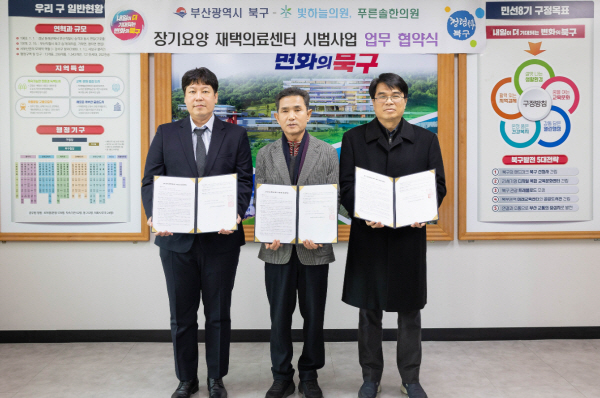 | ºÎ»ê ºÏ±¸ Àå±â¿ä¾ç ÀçÅÃÀÇ·á¼¾ÅÍ ¾÷¹« Çù¾à ü°á(¿ÞÂʺÎÅÍ ºûÇÏ´ÃÀÇ¿ø ±è¼ºÃ¶ ºÎÀå, ¿ÀÅ¿ø ºÏ±¸Ã»Àå, Ǫ¸¥¼ÖÇÑÀÇ¿ø ³ëÇöÂù ¿øÀå)
