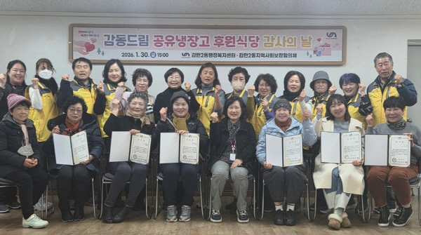 ºÎ»ê ³²±¸ °¨¸¸2µ¿ ÇàÁ¤º¹Áö¼¾ÅÍ´Â Áö³ 1¿ù 30ÀÏ, ¼¾ÅÍ 3Ãþ ȸÀǽǿ¡¼ ¡®°¨µ¿µå¸² °øÀ¯³ÃÀå°í »ç¾÷¡¯¿¡ Âü¿©ÇÑ ÈÄ¿ø½Ä´ç ´ëÇ¥µé¿¡°Ô °¨»çÀåÀ» Àü´ÞÇß´Ù.