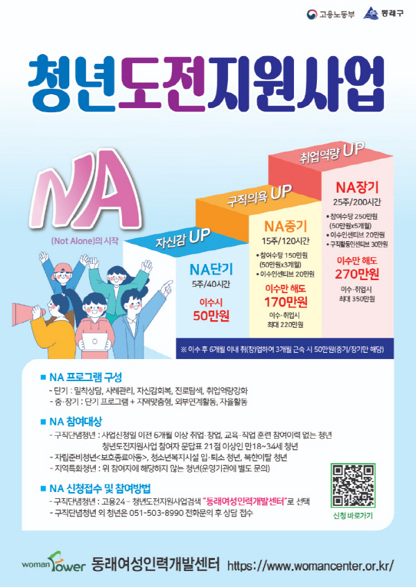 û³â µµÀü Áö¿ø »ç¾÷Àº »ó½Ã ¸ðÁýÀ¸·Î ÁøÇàµÇ¸ç, ¡®NA(Not Alone)ÀÇ ½ÃÀÛ¡¯À» ÇÔ²²ÇÏ°í ½ÍÀº û³âÀº µ¿·¡¿©¼ºÀη°³¹ß¼¾ÅÍ(¢Ï051-503-8990)·Î ¹®ÀÇÇÏ¸é µÈ´Ù.