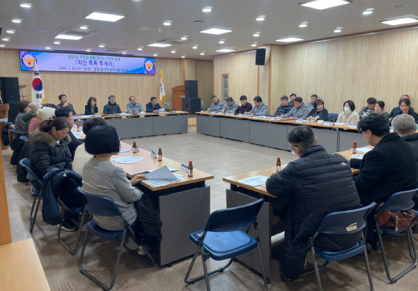 À̹ø °£´ãȸ´Â Áֹεé°úÀÇ ¼ÒÅë °È¸¦ À§ÇØ ¾çÁ¤1µ¿ÀÌ ÁֹεéÀ» ÃÊÃ»ÇØ ¸¶·ÃÇÑ ÀÚ¸®·Î, ºÎ»êÁø°æÂû¼°¡ Á÷Á¢ Âü¿©ÇØ Áö¿ª Ä¡¾È Çö¾È°ú »ýȰ ¾ÈÀü¿¡ ´ëÇÑ ´Ù¾çÇÑ ÀǰßÀ» ³ª´©´Â ¹æ½ÄÀ¸·Î ÁøÇàµÆ´Ù.