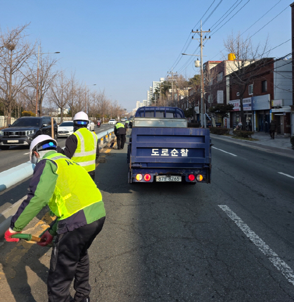 Á߾Ӻи®´ë´Â µµ·Î¿¡¼ Â÷·®ÀÇ ÁÖÇàÂ÷·Î¸¦ ºÐ¸®ÇÏ°í ¾ÈÀü¼ºÀ» Çâ»ó½Ã۱â À§ÇÑ ½Ã¼³¹°À̳ª, ºñÁ¤±âÀûÀÎ °ü¸®·Î ÀÎÇØ ÀϺΠ±¸°£¿¡¼´Â ÀâÃʳª ¿À¹°ÀÌ ½×¿© µµ·ÎÀÇ ¹Ì°üÀ» ÀúÇØÇÏ°í ±³Åë ¾ÈÀü¿¡ ¾Ç¿µÇâÀ» ³¢Ä¡°í ÀÖ´Ù. ÀÌ¿¡ Á߾Ӻи®´ë ¹Ù´Ú¿¡ ½×ÀÎ ÀâÃÊ¿Í °¢Á¾ ¿À¹°À» Á¦°ÅÇÏ¿© ±ú²ýÇÏ°í ¾ÈÀüÇÑ µµ·Î ȯ°æ Á¶¼º¿¡ ÁßÁ¡À» µÎ¾ú´Ù.