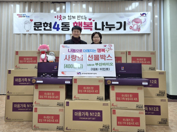 ºÎ»ê ³²±¸ ¹®Çö4µ¿ ÇàÁ¤º¹Áö¼¾ÅÍ(µ¿Àå ±è¿µÁÖ)´Â Áö³ 2ÀÏ, ¢ß³óÇù»ç·á ºÎ»ê¹ÙÀÌ¿À(ÀåÀå ÀÌÀÎÈ£)°¡ ¾î·Á¿î ÀÌ¿ôÀ» À§ÇÑ ÇÜ ¼±¹° ¼¼Æ®(400¸¸ ¿ø »ó´ç)¸¦ Àü´ÞÇß´Ù°í ¹àÇû´Ù.