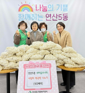 ¿¬Á¦±¸ ¿¬»ê5µ¿ »õ¸¶À»ºÎ³àȸ(ȸÀå ¹Ú¿¹Áø)´Â ´Ù°¡¿À´Â ¼³À» ¸ÂÀÌÇÏ¿© 1¿ù 30ÀÏ µ¿ ÇàÁ¤º¹Áö¼¾ÅÍ¿¡¼ °ü³» Àú¼Òµæ 50°¡±¸ ÁֹεéÀ» ´ë»óÀ¸·Î »ç¶ûÀÇ ¶±±¹¶± ³ª´® Çà»ç¸¦ °³ÃÖÇß´Ù.