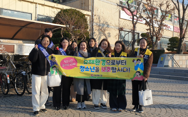 À̳¯ Ȱµ¿¿¡´Â »çÇϱ¸Ã»À» ºñ·ÔÇØ »çÇϰæÂû¼, »çÇϱ¸Ã»¼Ò³âÁöµµÇùÀÇȸ, »çÇϱ¸À¯ÇØÈ¯°æ°¨½Ã´Ü, »çÇϱ¸Ã»¼Ò³â»ó´ãº¹Áö¼¾ÅÍ, Çб³¹Ûû¼Ò³âÁö¿ø¼¾ÅÍ °ü°èÀÚ µî 50¿© ¸íÀÌ Âü¿©ÇßÀ¸¸ç, °ü³» ½ÅÆò¿ª°ú Çϴܵ¿ ¾ÆÆ®¸ô¸µ ÀÏ´ëÀÇ ÀϹÝÀ½½ÄÁ¡, ÆíÀÇÁ¡, ¼÷¹Ú¾÷¼Ò µî û¼Ò³â ÃâÀÔ¡¤°í¿ë ¹× ÁÖ·ù¡¤´ã¹è ÆÇ¸Å°¡ ¿ì·ÁµÇ´Â ¾÷¼Ò¸¦ Áß½ÉÀ¸·Î ¡ãû¼Ò³â ´ë»ó ÁÖ·ù¡¤´ã¹è ÆÇ¸Å ±ÝÁö ¡ãû¼Ò³â ÃâÀÔ¡¤°í¿ë Á¦ÇÑ ¡ãû¼Ò³â È¥¼÷ ±ÝÁö µî û¼Ò³â º¸È£¹ý Áؼö»çÇ×À» ¾È³»ÇÏ¸ç °èµµ Ȱµ¿À» ÆîÃÆ´Ù. ¶ÇÇÑ ¡®Ã»¼Ò³â À¯ÇØÈ¯°æ OUT¡¯ ¹®±¸°¡ ´ã±ä È«º¸¹°Ç°À» ¹èºÎÇϸç û¼Ò³â º¸È£ ÀÎ½Ä Á¦°í¿¡ Èû½è´Ù.