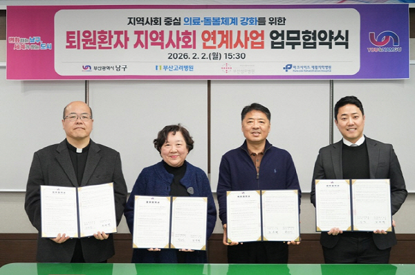 ºÎ»ê ³²±¸´Â Áö³ 2¿ù 2ÀÏ ºÎ»ê°í·Áº´¿ø, ºÎ»ê¼º¸ðº´¿ø, ÆÄÅ©»çÀ̵åÀçȰÀÇÇк´¿ø°ú ÅëÇÕµ¹º½»ç¾÷ ¡¸Åð¿ø È¯ÀÚ Áö¿ª»çȸ ¿¬°è»ç¾÷¡¹ ¾÷¹« Çù¾àÀ» ü°áÇß´Ù°í ¹àÇû´Ù.