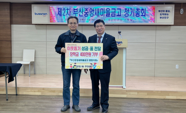 ºÎ»êÁß¾Ó»õ¸¶À»±Ý°í ¾çÁ¤ÁöÁ¡Àº ¾çÁ¤2µ¿ û¼Ò³âµéÀÇ Çо÷ Áö¿øÀ» À§ÇØ ÀåÇÐ±Ý 400¸¸ ¿øÀ» ±âŹÇßÀ¸¸ç, À̹ø ÀåÇбÝÀº °æÁ¦Àû ¾î·Á¿òÀ» °Þ°í ÀÖ´Â °ü³» û¼Ò³âµé¿¡°Ô Àü´ÞµÉ ¿¹Á¤ÀÌ´Ù.