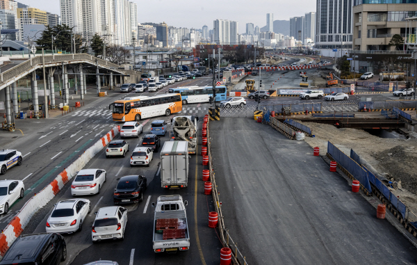 Áö³­ 6ÀÏ ºÎ»ê µ¿±¸ ÃæÀå´ë·Î ÀÏ¿ø¿¡¼­ ÁöÇÏÂ÷µµ °ø»ç·Î ÀÎÇØ Ãâ±Ù±æ Â÷·® Á¤Ã¼°¡ ºú¾îÁö°í ÀÖ´Ù. ÀÌ¿øÁØ ±âÀÚ windstorm@kookje.co.kr