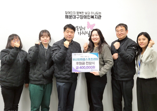 Áö³ 5ÀÏ(¸ñ) ºÎ»êÀ¯¶ó½Ã¾ÆÇ÷§Æû Á÷¿øµéÀÌ µ¿±¸Á¾ÇÕ»çȸº¹Áö°üÀ» ã¾Æ ±âºÎ ¹°Ç° Àü´Þ°ú Àå³°¨ ³îÀÌÅÍ ¼Òµ¶ ºÀ»çȰµ¿À» ÆîÃÆ°í, °°Àº³¯ ½ºÆ÷¿øº»ºÎ ÀÓÁ÷¿øÀ¸·Î ±¸¼ºµÈ ³ª´©¸®ºÀ»ç´ÜÀÌ ±ÝÁ¤±¸¿¡ À§Ä¡ÇÑ ³²±¤»çȸº¹Áö°üÀ» ã¾Æ ¼³ ¸íÀý ÈÄ¿ø ¹°Ç° 100¼ÂÆ®¸¦ Àü´ÞÇÏ¸ç ¾Æ¸§´Ù¿î µ¿ÇàÀ» À̾°¬´Ù. ¾Æ¿ï·¯ ¾î¸°ÀÌ´ë°ø¿ø»ç¾÷¼Ò Á÷¿øµéµµ 5ÀÏ ºÎ»êÁø±¸ ÃÊÀ¾µ¿¿¡ À§Ä¡ÇÑ ½Å¾ÖÀçȰ¿øÀ» ã¾Æ ½Ê½ÃÀÏ¹Ý ¸ðÀº ¼º±ÝÀ¸·Î ÈÀåÁö µî »ýÇÊǰÀ» ¸¶·ÃÇØ Àü´ÞÇÏ¿´´Ù.