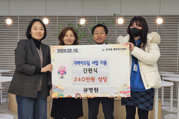 ºÎ»ê »çÇϱ¸ ´ç¸®µ¿ ÇàÁ¤º¹Áö¼¾Åʹ ťº´¿ø(º´¿øÀå ÇÏÅÂÀÎ)À¸·ÎºÎÅÍ ¡®°¡±îÀ̵帲¡¯ »ç¾÷ Áö¿øÀ» À§ÇÑ 240¸¸ ¿ø »ó´çÀÇ °£Æí½Ä·áǰÀ» Àü´Þ¹Þ¾Ò´Ù°í ¹àÇû´Ù.