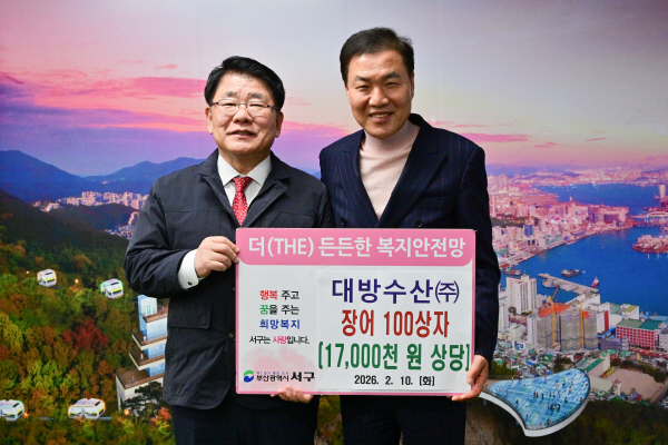 ¢ß´ë¹æ¼ö»ê(´ëÇ¥ °­Á¤¼ö)Àº Áö³­ 10ÀÏ ¼­±¸ Áö¿ª Ãë¾à°èÃþÀ» Áö¿øÇϱâ À§ÇØ Àå¾î 100»óÀÚ¸¦ ¼­±¸(±¸Ã»Àå °øÇѼö)¿¡ ±âŹÇß´Ù. À̹ø¿¡ ±âŹµÈ Àå¾î´Â °ü³» »çȸº¹Áö°ü, ¹«·á ±Þ½Ä¼Ò¿¡ ¹èºÐµÅ °á½Ä ¿ì·Á ¾î¸£½Å°ú ÀÌ¿ôµé¿¡°Ô Á¦°øµÉ ¿¹Á¤ÀÌ´Ù.