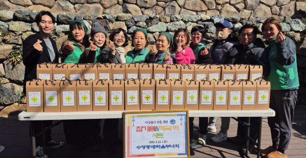 ºÎ»ê±¤¿ª½Ã ¼ö¿µ±¸ ¼ö¿µµ¿ ÇàÁ¤º¹Áö¼¾ÅÍ(µ¿Àå °µÎ¸®)´Â Áö³ 12ÀÏ ¼ö¿µµ¿ »õ¸¶À»ºÎ³àȸ(ȸÀå ±è¿¬È)¿¡¼ ¾î·Á¿î ÀÌ¿ôµéÀ» À§ÇØ Âü±â¸§¡¤±ú¼Ò±Ý¡¤¶±±¹¶±À¸·Î ±¸¼ºµÈ ¸íÀý ½Äǰ ¼¼Æ® 100°³¸¦ ÈÄ¿øÇÏ¿´´Ù°í ¹àÇû´Ù.