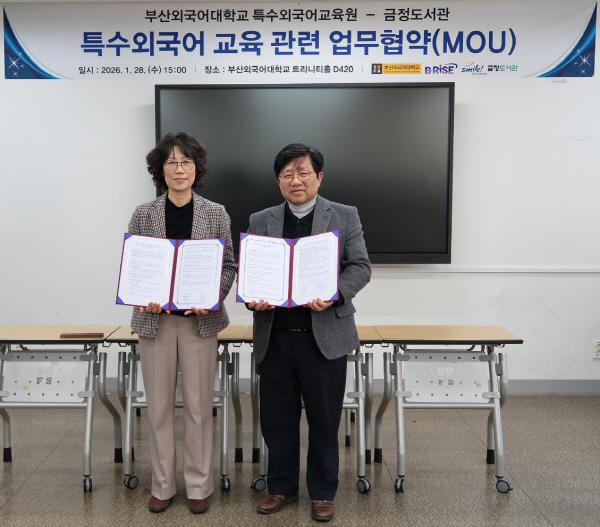 ºÎ»ê¿Ü±¹¾î´ëÇб³(ÃÑÀå Àå¼øÈï)´Â Áö³ 28ÀÏ ±³³» Æ®¸®´ÏƼȦ¿¡¼ ºÎ»ê ±ÝÁ¤µµ¼°ü(°üÀå Çϼº¾Æ)°ú Ư¼ö¿Ü±¹¾î ±³À° Çù·Â °È¸¦ À§ÇÑ ¾÷¹«Çù¾à(MOU)À» ü°áÇß°í 19ÀÏ ¹àÇû´Ù.