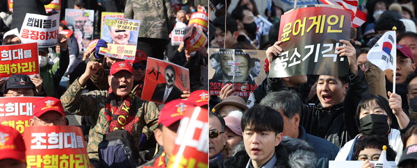 | 12¡¤3 ºñ»ó°è¾ö°ú °ü·ÃÇØ ³»¶õ ¿ìµÎ¸Ó¸® ÇøÀÇ·Î ±â¼ÒµÈ À±¼®¿ Àü ´ëÅë·ÉÀÇÇÑ 1½É ¼±°í°¡ ¿¸° 19ÀÏ ¼¿ïÁß¾ÓÁö¹ý Àαٿ¡¼ ÃкÒÇൿ °ü°èÀÚµéÀÌ À¯ÁË Ã˱¸ Áýȸ¸¦(¿ÞÂÊ), À± Àü ´ëÅë·É ÁöÁöÀÚµéÀÌ ¹«ÁË Ã˱¸ Áýȸ¸¦ ¿°í ÀÖ´Ù. ¿¬ÇÕ´º½º |