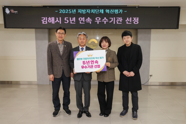 | 26ÀÏ ±èÇØ½Ã°¡ ¡®2025³â ÇàÁ¤¾ÈÀüºÎ ÁöÀÚü Çõ½ÅÆò°¡¡¯¿¡¼ ¿ì¼ö±â°üÀ¸·Î ¼±Á¤µÇ¸é¼ 2021³âºÎÅÍ 5³â ¿¬¼Ó ¼±Á¤À» À̾´Ù. ±èÇØ½Ã Á¦°ø