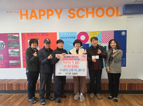 ºÎ»ê Áß±¸ º¸¼öµ¿ ûºÀȸ(ȸÀå ÃÖ¿µ½Å)´Â Áö³ 25ÀÏ º¸¼öÃʵîÇб³¸¦ ¹æ¹®ÇÏ¿© ¿ÃÇØ ÀÔÇлýÀ» ÃàÇÏÇϱâ À§ÇØ ¹®È»óǰ±Ç(75¸¸¿ø »ó´ç)À» Àü´ÞÇß´Ù.