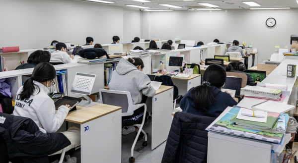 | 27ÀÏ ºÎ»êÁø±¸ °ø´Ü±â ºÎ»êÇпø µ¶Çаü¿¡¼ °ø¹«¿ø Áغñ»ýµéÀÌ ¿Â¶óÀÎ °ÀǸ¦ µéÀ¸¸ç ½ÃÇèÀ» ÁغñÇϰí ÀÖ´Ù. ÀÌ¿øÁØ ±âÀÚ
