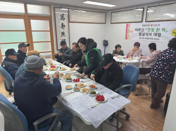 ¿µµµ±¸ µ¿»ï2µ¿ »õ¸¶À»ÁöµµÀÚÇùÀÇȸ(ȸÀå ¾çÁø±¹)¿Í »õ¸¶À»ºÎ³àȸ(ȸÀå ±è¼ºÈñ)´Â Áö³ 3¿ù 1ÀÏ, °ü³» Çϸ®°æ·Î´çÀ» ¹æ¹®ÇÏ¿© ¾î¸£½Å 50¿© ¸íÀ» ´ë»óÀ¸·Î ¡¸¾î¸£½Å °Ç° ÇÑ ³¢ ½Ä»ç ´ëÁ¢¡¹ Çà»ç¸¦ °³ÃÖÇß´Ù.