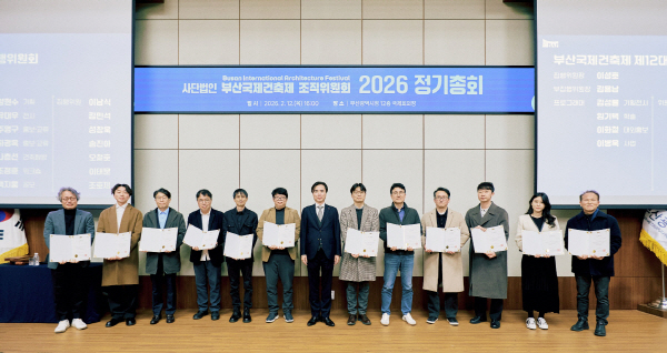 | ÃÖ±Ù ºÎ»ê½Ãû¿¡¼ ¿¸° (»ç)ºÎ»ê±¹Á¦°ÇÃàÁ¦Á¶Á÷À§¿øÈ¸ ¡®2026 Á¤±âÃÑȸ¡¯¿¡¼ Á¦12´ë ÁýÇàÀ§¿øÀåÀ¸·Î ¿¬ÀÓµÈ À̼ºÈ£(°¡¿îµ¥) µ¿¾Æ´ë µðÀÚÀÎȯ°æ´ëÇÐÀåÀÌ Á¦12´ë ÁýÇàÀ§¿øµé¿¡°Ô À§ÃËÀåÀ» ¼ö¿©ÇÑ µÚ ±â³äÃÔ¿µÀ» Çϰí ÀÖ´Ù.