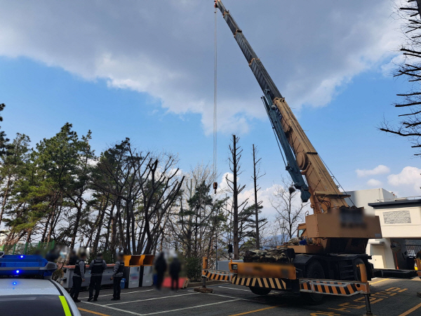 »ç°í ´ç½Ã A ¾¾´Â ÀÛ¾÷À» À§ÇØ Å©·¹Àο¡ ¸Å´Þ·Á ÀÖ´Ù°¡ ¶³¾îÁø °ÍÀ¸·Î ³ªÅ¸³µ´Ù. °æÂûÀº CCTV ¿µ»ó µîÀ» ÅëÇØ Á¤È®ÇÑ »ç°í ¿øÀÎÀ» Á¶»çÇϰí ÀÖ´Ù.