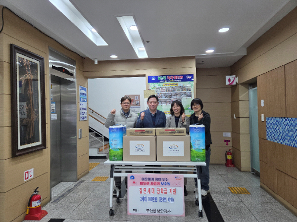 ºÎ»êÇ׺¸¾È°ø»ç(»çÀå Áö»óÀº)´Â Áö³ 18ÀÏ º¸¼öµ¿ ÇàÁ¤º¹Áö¼¾ÅÍ¿¡ ¹æ¹®ÇÏ¿© °á¿¬ û¼Ò³â 2¸í¿¡°Ô ÀåÇбÝÀ» Àü´ÞÇÏ¿´´Ù.