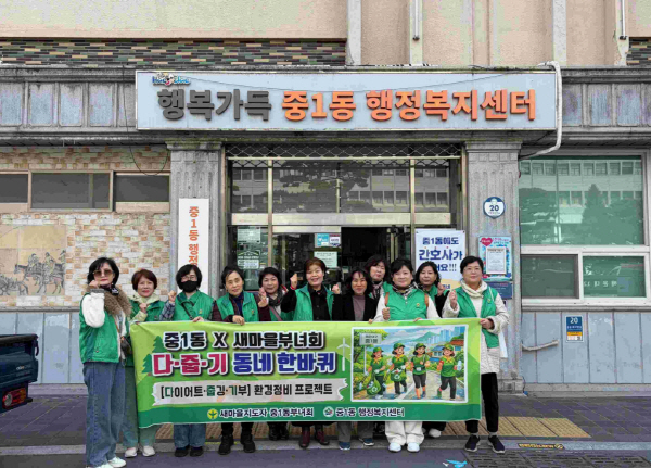 ÇØ¿î´ë±¸ Áß1µ¿ ÇàÁ¤º¹Áö¼¾ÅÍ(µ¿Àå ¼Õ¼ºÈñ)¿Í Áß1µ¿ »õ¸¶À»ºÎ³àȸ(ȸÀå ¹Ú¼öÁø)´Â Áö³ 17ÀÏ Áö¿ª ȯ°æÁ¤ºñ Ư¼ö½ÃÃ¥¡®´Ù¡¤ÁÝ¡¤±â(´ÙÀÌ¾îÆ®¡¤Áݱ⡤±âºÎ) µ¿³× ÇѹÙÄû¡¯ÇÁ·ÎÁ§Æ®¸¦ ¼ºÈ²¸®¿¡ ½Ç½ÃÇß´Ù.