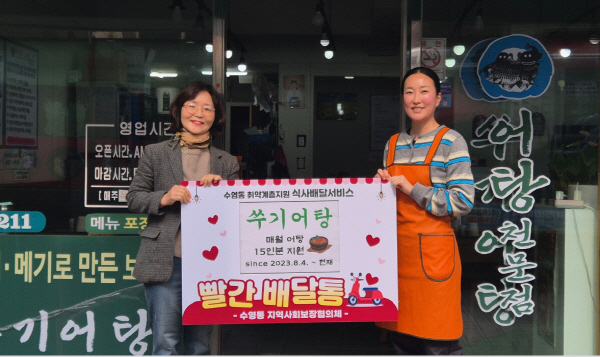 ºÎ»ê±¤¿ª½Ã ¼ö¿µ±¸ ¼ö¿µµ¿ÇàÁ¤º¹Áö¼¾ÅÍ(µ¿Àå °µÎ¸®)´Â Áö³ 6ÀÏ ½Ä»ç¸¦ ì±â±â ¾î·Æ°Å³ª °Åµ¿ÀÌ ºÒÆíÇÑ Ãë¾à°èÃþÀ» ´ë»óÀ¸·Î ¿î¿µ ÁßÀÎ ½Ä»ç¹è´Þ¼ºñ½º¡¸»¡°£¹è´ÞÅ롹»ç¾÷¿¡ ¡®¾¥±â¾îÅÁ(´ëÇ¥ Á¶¿Áºó)¡¯¿¡¼ ¾îÅÁ 15ÀκÐÀ» Áö¿øÇÏ¿´´Ù°í ¹àÇû´Ù.