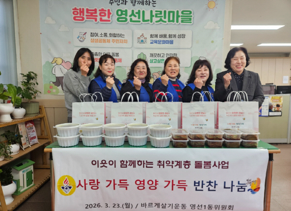 ¿µµµ±¸ ¹Ù¸£°Ô»ì±â¿îµ¿ ¿µ¼±1µ¿À§¿øÈ¸(À§¿øÀå ±è¿ëÀÚ)´Â Áö³ 3¿ù 23ÀÏ, °ü³» Ãë¾à°èÃþ Áß ½Ä»ç Áغñ¿¡ ¾î·Á¿òÀ» °Þ´Â Ȧ·Î ¾î¸£½Å µîÀ» ´ë»óÀ¸·Î ¡¸»ç¶û °¡µæ ¿µ¾ç °¡µæ ¹ÝÂù ³ª´®¡¹ Çà»ç¸¦ ÁøÇàÇß´Ù°í ¹àÇû´Ù.