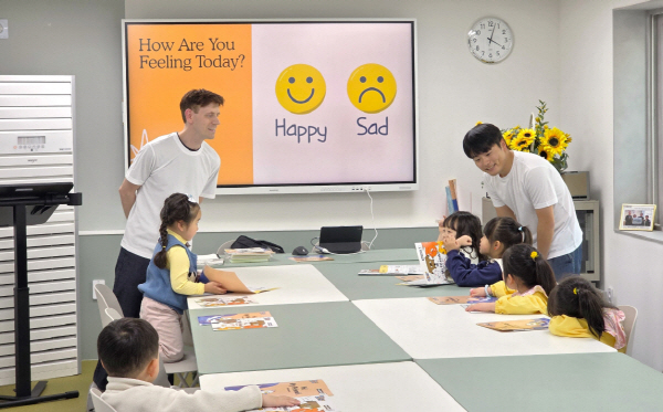 ¼ö¾÷ ³»¿ëÀº ¾ÆÀ̵éÀÇ ´«³ôÀÌ¿¡ ¸ÂÃá ³ë·¡¿Í À²µ¿, ÆÄ´Ð½º ¾×¼Ç °ÔÀÓ µî ´Ùä·Î¿î üÇè Ȱµ¿ À§ÁÖ·Î ±¸¼ºµÇ¾î ¾ÆÀ̵éÀÌ ÀÚ¿¬½º·´°Ô ¿µ¾î¸¦ ½ÀµæÇÒ ¼ö ÀÖµµ·Ï µ½´Â´Ù. ½ÇÁ¦·Î Áö³ ù³¯ °³° ¼ö¾÷¿¡¼´Â Å׸¶ ¼Ò°³¿Í ÇÔ²² ¡®Simon Says¡¯ °ÔÀÓ, µ¿ÀÛ ´Ü¾î ³ë·¡ ºÎ¸£±â µîÀ» ÁøÇàÇÏ¿© Âü¿© ¾Æµ¿µéÀÇ Å« È£ÀÀÀ» ¾òÀ¸¸ç ¼º°øÀûÀÎ Ãâ¹ßÀ» ¾Ë·È´Ù.