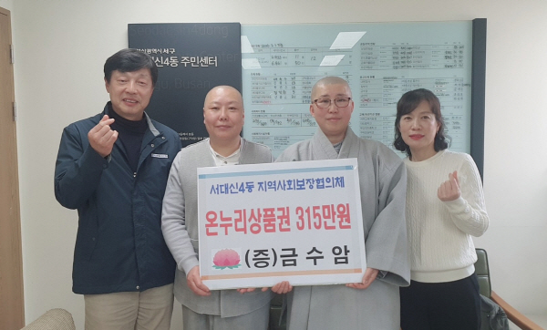 ºÎ»ê ¼±¸ ±Ý¼ö¾Ï(ÁÖÁö Áö°ü½º´Ô)Àº 27ÀÏ ¼´ë½Å4µ¿(µ¿Àå Á¤ÇöÁ¶)¿¡ ¿Â´©¸® »óǰ±Ç(315¸¸ ¿ø »ó´ç)À» Àü´ÞÇÏ¿´´Ù.
