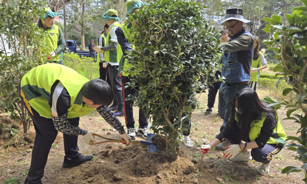 ºÎ»ê ´ëÇ¥ °ø±â¾÷ÀÌ ½Ä¸ñÀÏÀ» ¸Â¾Æ ±Ý°°ø¿ø¿¡¼ À¯°ü±â°ü°ú ÇÔ²²ÇÏ´Â ³ª¹«½É±â Çà»ç¸¦ ¿¸ç ³ì»ö ȯ°æ Á¶¼º¿¡ ³ª¼¹´Ù.