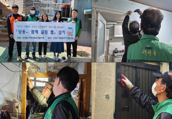 À̹ø »ç¾÷Àº ¿ÜºÎ¿ÍÀÇ ¼ÒÅëÀÌ ¾î·Á¿î µ¶°Å¾î¸£½Å °¡±¸¸¦ ÃÊÀ嵿 Áö¿ª»çȸº¸ÀåÇùÀÇü°¡ ¹ß±¼Çϰí, »õ¸¶À»ÁöµµÀÚÇùÀÇȸ ȸ¿øµéÀÌ °¢ °¡Á¤À» Á÷Á¢ ã¾Æ ¹«¼± ÃÊÀÎÁ¾À» ¼³Ä¡ÇÏ´Â ¹æ½ÄÀ¸·Î ÁøÇàµÆ´Ù. ȸ¿øµéÀº ¼³Ä¡ ÀÛ¾÷°ú ÇÔ²² ¾î¸£½ÅµéÀÇ »ýȰ ºÒÆíÀ» »ìÇÇ¸ç µû¶æÇÑ Àç´É±âºÎ Ȱµ¿À» ÆîÃÆ´Ù.