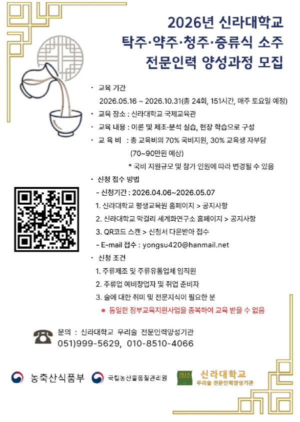½Å¶ó´ëÇб³(ÃÑÀå Çã³²½Ä) ¿ì¸®¼ú Àü¹®Àη¾缺±â°üÀº ³ó¸²Ãà»ê½ÄǰºÎ·ÎºÎÅÍ ÀüÅëÁÖ Àü¹®Àη ¾ç¼º±³À°Áö¿ø ±â°üÀ¸·Î ¼±Á¤µÅ, ±Þº¯ÇÏ´Â ÁÖ·ù ½ÃÀå¿¡ ´ëÀÀÇÒ Â÷¼¼´ë ÀüÅëÁÖ Àü¹®°¡ ¾ç¼º¿¡ º»°ÝÀûÀ¸·Î ³ª¼±´Ù°í ¹àÇû´Ù.