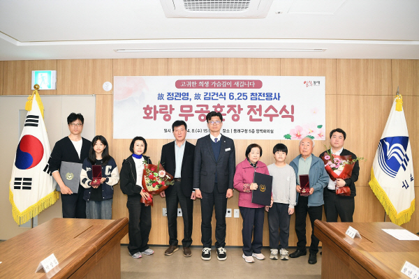 ºÎ»ê µ¿·¡±¸´Â Áö³ 8ÀÏ 6¡¤25ÀüÀï¿¡ ÂüÀüÇØ ¹«°øÀ» ¼¼¿î °í Á¤°ü¿µ ÁßÀ§¿Í °í ±è°Ç½Ä º´ÀåÀÇ Èļտ¡°Ô °¢°¢ Àº¼ºÈ¶û, ¹«¼ºÈ¶û ¹«°øÈÆÀåÀ» Àü´ÞÇß´Ù°í 9ÀÏ ¹àÇû´Ù.