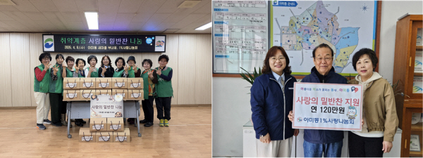 ºÎ»ê±¤¿ª½Ã ¼±¸ ¾Æ¹Ìµ¿ »õ¸¶À»ºÎ³àȸ(ȸÀå ±è¾çÈñ)´Â Áö³ 8ÀÏ Áö¿ª ³» 5060 Ãë¾à°èÃþ 20°¡±¸¸¦ ´ë»óÀ¸·Î ¹èÃß±èÄ¡, µÈÀå±¹, Àâä, ²¢ÀÙ³ª¹° µî ¿µ¾çÀ» °í·ÁÇÑ ¹Ø¹ÝÂùÀ» Á÷Á¢ ÁغñÇØ °¢ °¡Á¤¿¡ Àü´ÞÇß´Ù. À̳¯ 1%»ç¶û³ª´®È¸(ȸÀå ÀÌÀÏ»ï)Àº ¹Ø¹ÝÂù Áö¿øÀ» À§ÇÑ ÈÄ¿ø±ÝÀ» Àü´ÞÇÏ¸ç ³ª´® Ȱµ¿¿¡ ÈûÀ» º¸ÅÉ´Ù. À̹ø Ȱµ¿Àº ½Ä»ýȰ Áö¿øÀÌ ÇÊ¿äÇÑ ÀÌ¿ôÀ» µ½±â À§ÇØ ¸¶·ÃµÆÀ¸¸ç °Ý¿ù·Î ÃßÁøµÇ´Â ¹Ø¹ÝÂù Áö¿øÀÇ ÀÏȯÀÌ´Ù.