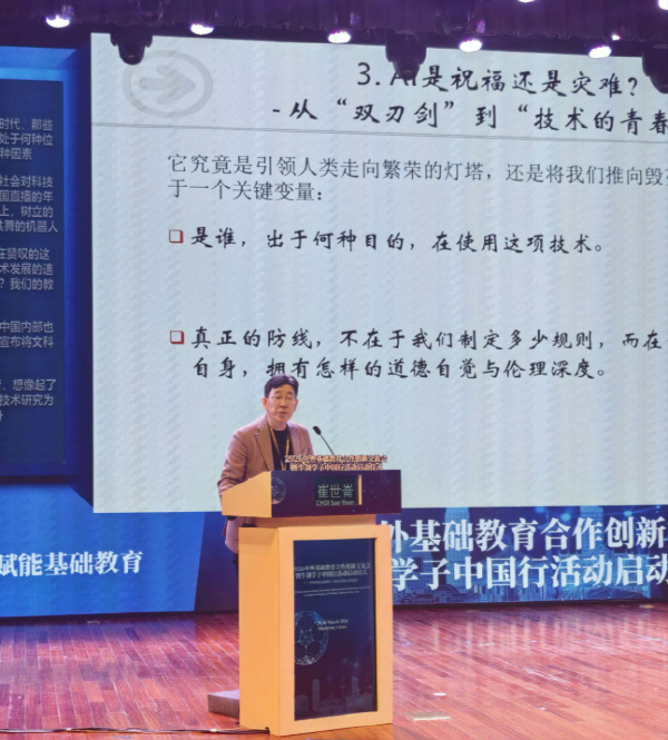 Çѱ¹ °í½Å´ëÇб³ ÃÖ¼¼À± ±³¼ö(±Û·Î¹úºñÁî´Ï½ºÇаú ÇаúÀå)´Â ±âÁ¶°¿¬À» ÅëÇØ ¡°AI ±â¼ú ¹ßÀüÀÇ ¼Óµµ°¡ Àΰ£ Àνİú À±¸®ÀÇ ÁøÈ ¼Óµµ¸¦ µû¶óÀâ°í Àִ°¡¡±¶ó´Â ±Ùº»Àû Áú¹®À» Á¦±âÇß´Ù. Àι®ÇÐÀڷμ ±×´Â AI ±â¼ú ÀÚü´Â ¼±¾ÇÀÇ Á߸³Àû µµ±¸À̸ç, ±× °¡Ä¡´Â ±â¼úÀ» »ç¿ëÇÏ´Â Àΰ£ÀÇ µµ´öÀû ÀÚ°¢¿¡ ´Þ·Á ÀÖ´Ù°í °Á¶Çß´Ù. ¶ÇÇÑ AI´Â ƯÁ¤ °èÃþ¸¸ÀÇ Æ¯±ÇÀÌ ¾Æ´Ñ, ¸ðµç ½Ã¹ÎÀÌ °øÆòÇÏ°Ô ´©¸± ¼ö ÀÖ´Â ¡®°ø°ø Áö´É(ÍëÍìòªÒö)¡¯À̾î¾ß Çϸç, ƯÈ÷ Ãë¾à°èÃþÀ» ¹è·ÁÇÏ´Â ¹æÇâÀ¸·Î ¹ßÀüÇØ¾ß ÇÑ´Ù°í ¿ª¼³Çß´Ù.