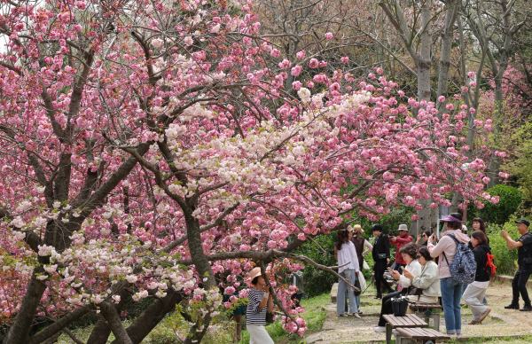 | ºÎ»ê Áß±¸ ºÎ»ê¹ÎÁÖ°ø¿ø °ãº¢²É µ¿»êÀ» ãÀº ½Ã¹Î°ú °ü±¤°´µéÀÌ ¸¸°³ÇÑ °ãº¢²ÉÀ» °¨»óÇÏ°í »çÁøÀ» ÂïÀ¸¸ç º½ÀÇ Á¤Ã븦 Áñ±â°í ÀÖ´Ù. ¿¬ÇÕ´º½º