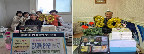 ³²ºÎ¹Î2µ¿ Áö¿ª»çȸº¸ÀåÇùÀÇü(À§¿øÀå ¹èÂù½Ä)´Â Áö³ 4¿ù 16ÀÏ °Ç°°ú ÇູÀ» ¡¸¿Â±â °¡µæ »ê¼ö¿¬(ß¡áøæÃ)¡¹ »ç¾÷À» ÃßÁøÇÏ¿´´Ù. º» »ç¾÷Àº Áö¿ª»çȸº¸ÀåÇùÀÇü À§¿øµéÀÌ Ãë¾à°èÃþ Ȧ·Î ¾î¸£½ÅÀÇ °Ç°°ú Àå¼ö¸¦ ±â¿øÇÏ¸ç ÆÈ¼ø »ý½ÅÀ» ÇÔ²² ÃàÇÏÇÏ´Â ÀÚ¸®·Î, ¹Î°üÇù·Â ³ª´® ¾÷ü ³²ºÎ¹Î¶±¹æ¾Ñ°£(´ëÇ¥ ¹Ú°æÈ¯), À¯¸®²ÉÈ¿ø(´ëÇ¥ Àü¼øµæ)¿¡¼ ¶±ÄÉÀÌÅ©, ¹Ý·Á ½Ä¹° µîÀ» Áö¿øÇÏ¿´´Ù.