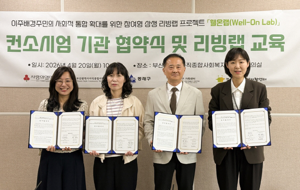 ½Å¶ó´ëÇб³(ÃÑÀå Çã³²½Ä) ¼öʱâ°üÀÎ ºÎ»ê½Ã»çÁ÷Á¾ÇÕ»çȸº¹Áö°üÀº ÀÌÁÖ¹è°æÁÖ¹ÎÀÇ »çȸÀû ÅëÇÕÈ®´ë¸¦ À§ÇÑ ¼Ò¼È¸®ºù·¦ ÇÁ·ÎÁ§Æ® ¡®À£¿Â·¦(Well-On Lab)¡¯ ÃßÁøÀ» À§ÇØ µ¿·¡±¸Ã», µ¿·¡±¸°¡Á·¼¾ÅÍ, µ¿·¡Áö¿ªÀÚȰ¼¾ÅÍ¿Í ¾÷¹«Çù¾àÀ» ü°áÇß´Ù°í 22ÀÏ ¹àÇû´Ù.