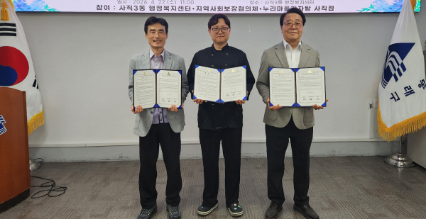 ºÎ»ê µ¿·¡±¸ »çÁ÷3µ¿ ÇàÁ¤º¹Áö¼¾ÅÍ(µ¿Àå °À¯Áø)°ú »çÁ÷3µ¿ Áö¿ª»çȸº¸ÀåÇùÀÇü(¹Î°£À§¿øÀå ±Ç¿ÀÁØ)´Â Áö³ 22ÀÏ ´©¸®¸¶À»°¨ÀÚÅÁ »çÁ÷Á¡(´ëÇ¥ ÀÌÀçµÎ)°ú¡®¿ì¸® µ¿³× ä¿ò ÄíÆù¡® »ç¾÷ ÃßÁøÀ» À§ÇÑ ¾÷¹« Çù¾àÀ» ü°áÇß´Ù°í ¹àÇû´Ù.