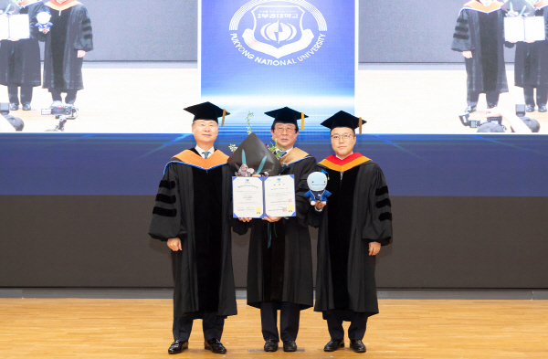 | ¹Ú¼¼È£ ȸÀå(°¡¿îµ¥)ÀÌ ¸í¿¹ °æ¿µÇйڻç ÇÐÀ§¸¦ ¹Þ°í ¹è»óÈÆ ÃÑÀå(¿ÞÂÊ), ÇѰæ¼ö ¿¬±¸ºÎÃÑÀå °â ´ëÇпøÀå°ú ±â³ä»çÁøÀ» Âï°í ÀÖ´Ù.