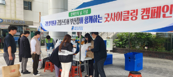 ºÎ»ê »çÇϱ¸´Â Á¦46ȸ Àå¾ÖÀÎÀÇ ³¯(4¿ù 20ÀÏ)À» ¸Â¾Æ Áö³ 4¿ù 23ÀÏ »çÇϱ¸Ã» º»Ã» ¹× Á¦2û»ç¿¡¼ ÁßÁõÀå¾ÖÀÎ Á÷¾÷ÀçȰ½Ã¼³ ¡®±ÂÀªÄÚ¸®¾Æ º¸È£ÀÛ¾÷À塯(½Ã¼³Àå ±è¼ºÅÂ)°ú ÇÔ²² ¡¸±Â»çÀÌŬ¸µ¡¹ ±âºÎ ¹°Ç° ³ª´® Çà»ç¸¦ °³ÃÖÇß´Ù.