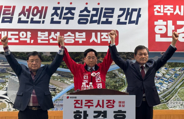 ±¹¹ÎÀÇÈû ÇѰæÈ£ È帴 27ÀÏ ÁøÁÖ½Ãû ºê¸®Çη뿡¼ ±âÀÚȸ°ßÀ» ¿°í, ´ç³» °æ¼±¿¡¼ °æÀïÇß´ø ±è±Ç¼ö¡¤¹Ú¸í±Õ Èĺ¸¿Í ÇÔ²² ¡®¿øÆÀ¡¯ ±¸¼ºÀ» ¼±¾ðÇß´Ù. ÇÑ È帴 ¡°°æ¼± °úÁ¤¿¡¼ÀÇ ¾à¼Ó´ë·Î ÀÌÁ¦´Â ¸ðµÎ Çϳª°¡ µÅ ÁøÁÖÀÇ ¹ßÀü°ú ½Ã¹ÎÀÇ ÇູÀ» À§ÇØ ³ª¾Æ°¡°Ú´Ù¡±¸ç ¡°ºÐ¿ÀÌ ¾Æ´Ñ ÅëÇÕ, °¥µîÀÌ ¾Æ´Ñ Çù·ÂÀ¸·Î ¹Ýµå½Ã ½Â¸®Çϰڴ١±°í ¹àÇû´Ù. À̳¯ ±âÀÚȸ°ß¿¡´Â ±è±Ç¼ö, ¹Ú¸í±Õ È帵µ Âü¼®ÇØ ÇÑ Èĺ¸ ÁöÁö¸¦ °ø½Ä ¼±¾ðÇß´Ù.±¹¹ÎÀÇÈû Èĺ¸ÀÎ ÇѰæÈ£ È帴 ³«ÃµÀÚ¿Í ¿øÆÀÀ» ±¸¼ºÇØ ¼±°ÅÀü¿¡ ¶Ù¾îµç µ¥ À̾î Á¶±ÔÀÏ ÁøÁÖ½ÃÀåÀº Ã⸶ ¼±¾ð°ú ÇÔ²² ¿¹ºñÈĺ¸ µî·ÏÀ» Çß´Ù.